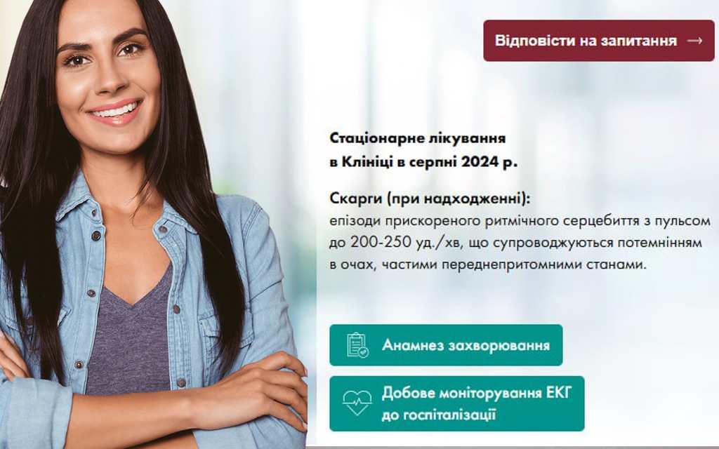 Анамнез захворювання У грудні 2023 року після емоційного навантаження відчула прискорене ритмічне серцебиття тривалістю до 20-30 сек. Пароксизм купірувався самостійно. Подібні епізоди стали